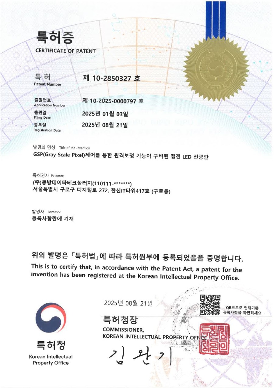 국내특허 - GSP(Gray Scale Pixel)제어를 통한 원격보정 기능이 구비된 절전 LED 전광판