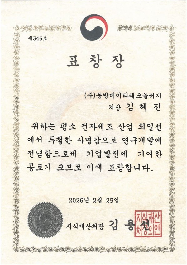 표창 및 수상내역 한국전자산업협동조합 지식재선처장 표창 페이지 정보 작성자 관리자 댓글 0건 조회 14회 작성일 26-03-31 16:19 목록 게시판 리스트 옵션 검색 본문 한국전자산업협동조합 지식재선처장 표창 다음글서울상공회의소 구로구상공회 표창 24.05.23